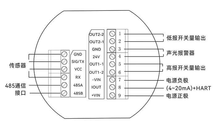 | 输出信号 | 4-20mA(三线制) 4-20mA+HART(选购) 继电器开关量输出(2A 30VDC) 24VDC继电器输出(驱动声光报警器) |